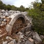 The edict of Milan issued in AD 313 effectively ended the persecution of Christians in the Roman Empire. The martyrion at Yanıkhan was built about fifty years later. The early Christians, however, had long memories and seldom forgot about the saints who dedicated their lives to the Gospel. They often collected relics of the martyrs and wished to be buried near the place of their execution. The best-preserved part of the basilica at Yanıkhan is the central apse, which is flanked by two smaller apses. The small apse on the right encloses an arcosolium  (burial vault). Inside were the relics of Georgios, Conon and Christophorus. In fact, the basilica was probably built at this site where the martyrs were executed or buried. The relics have long since disappeared. But, the fading memory of the saints remains . . . only through the now illegible inscription lying in the rubble of a remote site in southwest Turkey.